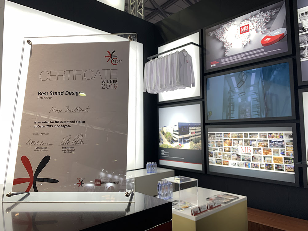 Max Brilliant participates C-star retail trade fair (Shanghai, China), and awarded for the best stand design.